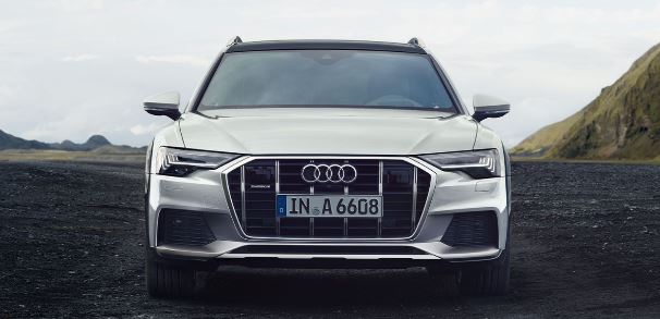 Audi Singleframe'deki dikey payandalar ve yan hava girişlerinin tasarımı A6 allroad quattro'nun ayırt edici özellikleridir.