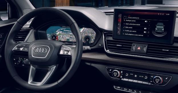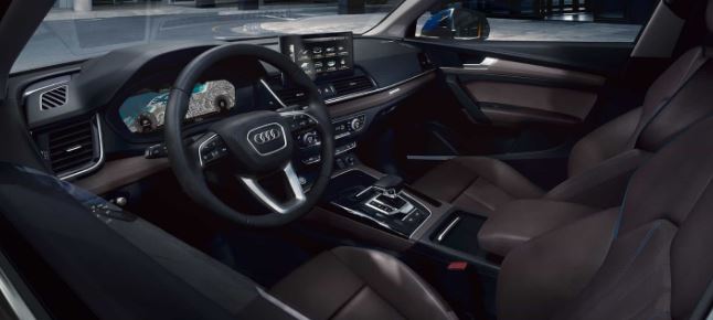 Boyut, performans ve işlevsellik kombinasyonu Audi Q5 Sportback'i diğerlerinden ayırır. Yükseltilmiş oturma konumu, trafikte iyi bir görüş sağlar. Yatay olarak yönlendirilmiş çizgileri, ferahlık ve rahatlık izlenimini vurgular. Gösterge panelinin tüm genişliği boyunca üç boyutlu olarak şekillendirilmiş dekoratif bir kaplama uzanır.