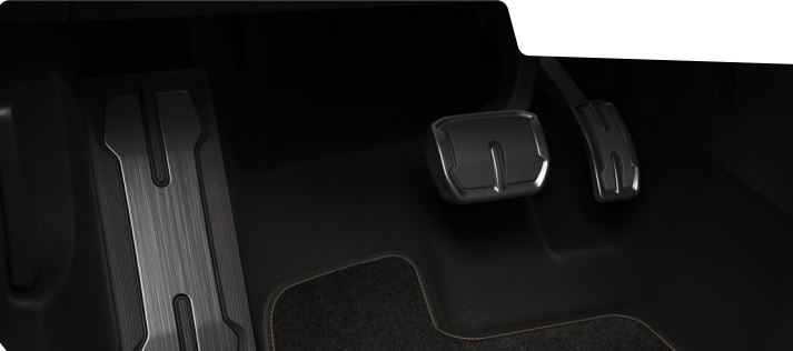 Koyu alüminyum görünümlü spor pedal seti, sofistike duruşu sportif sürüş ile birleştirir.