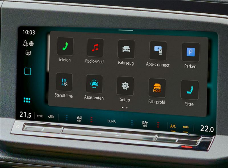 Caddy’nin renkli 10” (25,4 cm) geniş dokunmatik multimedya ekranı üzerinden araç bilgilerini takip edebilir, radyoyu kontrol edebilir, navigasyon sistemini kullanarak gitmek istediğiniz yerleri işaretleyebilirsiniz. Üstelik Composition Color Radyo’nuz 6 adet hoparlör, orta konsolda iki adet USB-C port ve Bluetooth'lu mobil telefon hazırlığıyla size mükemmel müzik deneyimi sunmak için hazır.