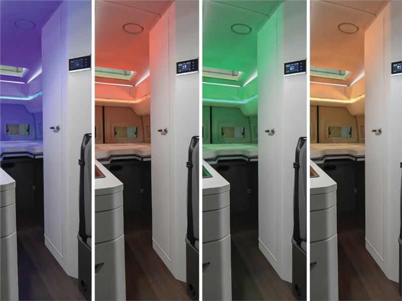 - Duvar dolap üniteleri arasında rengi değiştirilebilen ambiyans aydınlatması
