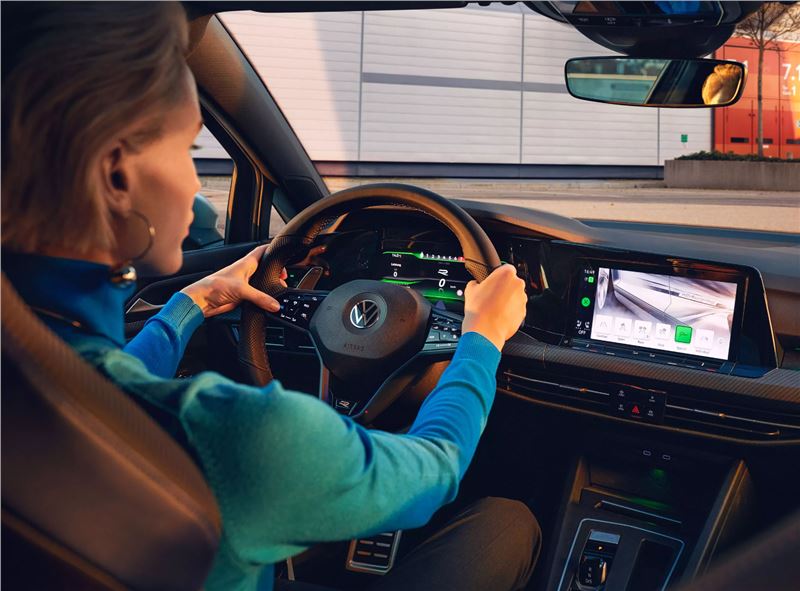 Golf R’ın sürücü odaklı tasarlanmış iç mekanının merkezinde yer alan 10” Dijital Gösterge Paneli “Digital Cockpit Pro”, R Kokpit Modu “R-View” sayesinde yatay hız göstergesi ve vites değiştirme noktaları gibi saf kan yarış otomobillerinin sürücü arabirimlerini ekrana taşır. Aktive etmek için Çok Fonksiyonlu ve Isıtmalı “R” Deri Direksiyonun kapasitif dokunmatik tuş takımı üzerinde bulunan “R” yüzeyine dokunmanız yeterli.Böylece adım attığınız performans dünyasında, “Discover Pro” Radyo ve Navigasyon Sistemi üzerinden dilediğiniz sürüş profilini seçerek, sürüş tarzınızı tanımlayabilirsiniz. Hissedilebilir çeviklik ve saf sürüş zevki, tek tuş uzağınızda.