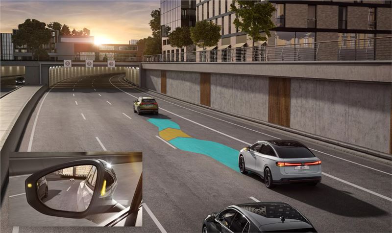 Şerit Değiştirme Asistanı "Side Assist", yolculuk sırasında güvenliğini artıran akıllı bir sistemdir. ID.7'nin dört bir yanında bulunan kameralar sayesinde, aracın yanındaki kör noktalarda yer alan diğer araçları tespit ederek, şerit değiştirme sırasında potansiyel tehlikelere karşı önceden uyarır. (P)