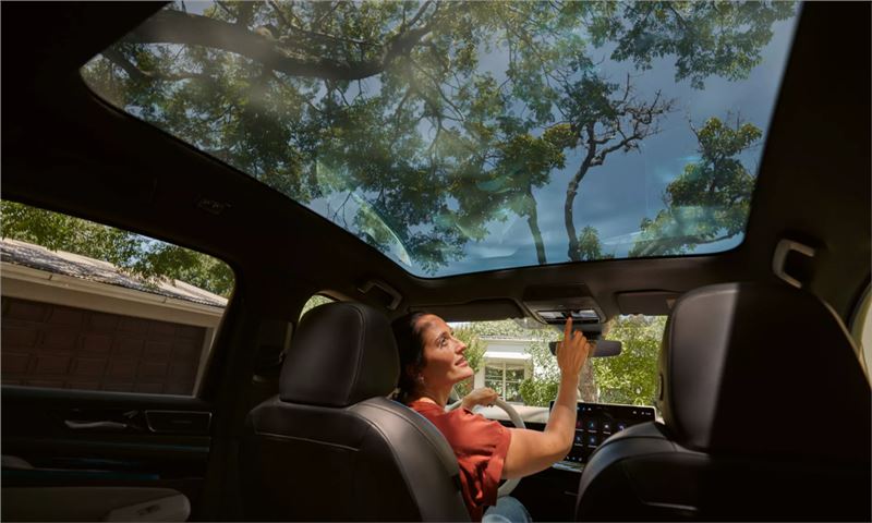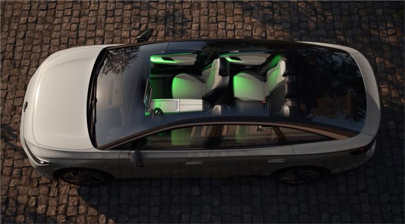 ID.7’nin elektrokrom özellikli Akıllı Panoramik Cam Tavan "Smart Glass"ı, araç içindeki ferahlık hissini zirveye taşır. Geniş yapısıyla iç mekânı doğal ışıkla dolduran bu özel tasarım hem sürücüyü hem de yolcuları çevreyle daha fazla bütünleştirir. Neredeyse ID.7'nin tavanını tamamen kaplayan Akıllı Panoramik Cam Tavan "Smart Glass" gün ışığını araç içine davet eder, yolculuk sırasında açık gökyüzünün ve manzaranın keyfinin çıkarılmasını sağlar. (O)