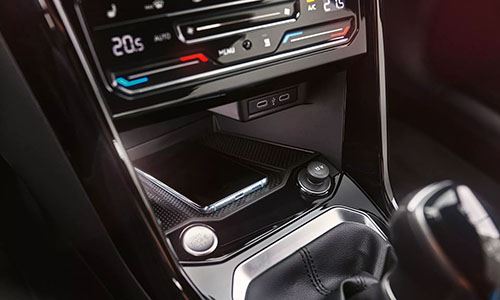 Her zaman yanınızda taşımak zorunda kaldığınız, birbirine dolaşan kabloları ve farklı cihazlar için farklı USB tiplerine sahip uçları unutun! T-Roc, Qi standardını destekleyen akıllı telefonlarınız için pratik bir şarj noktasına sahiptir. Bunun için, ihtiyacınız olduğu her an akıllı telefonunuzu ön saklama bölmesinde bulunan kablosuz şarj pedinin üzerine yerleştirebilir ve cihazınızı kablosuz olarak şarj edebilirsiniz. Elbette bunun için cihazınızın ayarlar bölümünden “Kablosuz Şarj” fonksiyonunu aktive ettiğinizden ve kablosuz şarjı desteklemeyen kılıfınızdan kurtulduğunuza emin olun. (O)