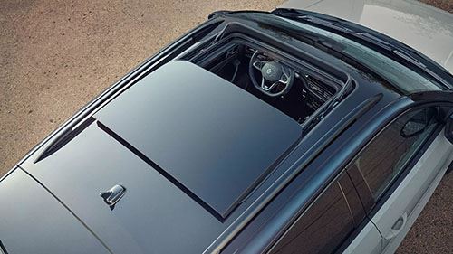 T-Roc'un tüm tavanı boyunca uzanan ultra geniş Panoramik Açılır Cam Tavan, yukarıya ve geriye doğru açılarak tüm dikkatleri üzerine toplar. Tek bir merkezi buton tarafından elektrikli olarak kontrol edilebilen bu Panoramik Açılır Cam Tavanın ön yarısı yukarıya doğru kaldırılabilir ya da tamamen açılabilir. Böylece dilediğiniz kadar gün ışığı ve temiz hava, T-Roc'un iç mekanına dolar.