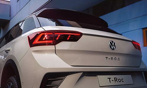 Bununla birlikte T-Roc’un, Volkswagen logosuna kadar uzanan dekoratif LED ışık şeritleriyle birlikte tüm ön kısma hakim olan yepyeni aydınlatma sistemleri, IQ.LIGHT - LED Matrix farlar (O) ve ön tamponda yer alan LED gündüz sürüş farları (ST) (R) ile tüm bakışları üstüne çeker. Arka tasarım, tampona entegre edilmiş reflektörler, kontrast oluşturan siyah yüzeyler ve entegre egzoz dekorlarıyla tamamlanır.