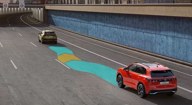 Şerit Değiştirme Asistanı “Side Assist”, aracın arkasında bulunan uzun menzilli radar sensörleri sayesinde şerit değiştirme sırasında sürücüyü destekler. Sistem, yolda ilerlerken arkadan hızla yaklaşan veya kör noktada bulunan ve şerit değişikliği durumunda kazaya sebebiyet verebilecek bir aracın varlığını tespit eder. Yeni Tiguan, arkadan gelen araç hangi tarafta ise ilgili tarafın yan aynasında bulunan görsel ikazlar ile sürücüyü uyararak güvenli bir yolculuğu garanti eder.