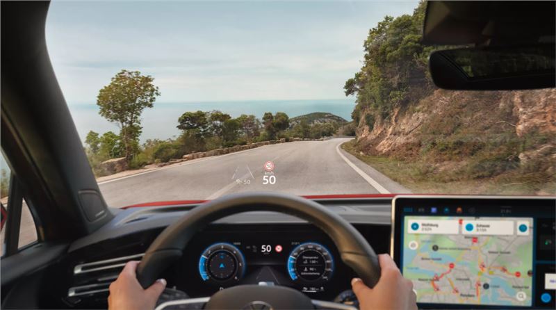 Kim gözlerini yolda tutarken önemli bilgilere göz atabilmek istemez ki? Bu, Renkli Ek Bilgilendirme Ekranı "Head Up Display"in en önemli avantajlarından biridir.Ön camın bir bölümü hızı, sürüş destek sistemlerinden gelen mesajları veya navigasyon talimatlarını gösterebilen bir yansıtma yüzeyi hâline gelir. Yansıtılan bilgiler, ışık doğrudan ön cama vurduğunda bile net bir şekilde okunabilir. Siz yeter ki gözünüzü yoldan ayırmayın! Yeni Tiguan, ihtiyacınız olan tüm bilgileri görüş alanınıza taşır. (O)