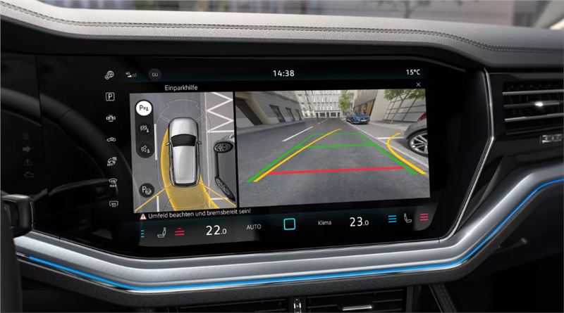 Yeni Touareg'in dijital iç mekanı sınırsız konfor ve eğlenceyi bir arada sunar. Tüm bilgilendirmeleri sürücünün görüş alanına yansıtan ve yolculuğunuzu daha keyifli hale getiren 12.3” Dijital Gösterge Paneli "Digital Cockpit Pro" ve 15” "Discover Pro Max" Navigasyon Sistemini bir arada sunar. Yolculuğunuzu daha kolay hale getiren yenilik: Dijital Kokpit "Innovision Cockpit". (E) (R)Dokunma, jest veya ses kontrolü ile yönetilebilir.