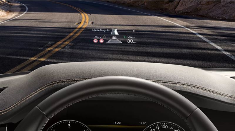 Kim gözlerini yolda tutarken önemli bilgilere göz atabilmek istemez. Bu, Renkli Ek Bilgilendirme Ekranı "Head Up Display"in önemli avantajlarından biridir. Ön camın bir bölümü hızınızı, sürücü destek sistemlerinizden gelen mesajları veya navigasyon talimatlarını gösterebilen bir yansıtma yüzeyi hâline gelir. Yansıtılan bilgiler, ışık doğrudan ön cama vurduğunda bile net bir şekilde okunabilir. Dilerseniz gerekmediğinde göstergeyi kapatabilirsiniz. (O)