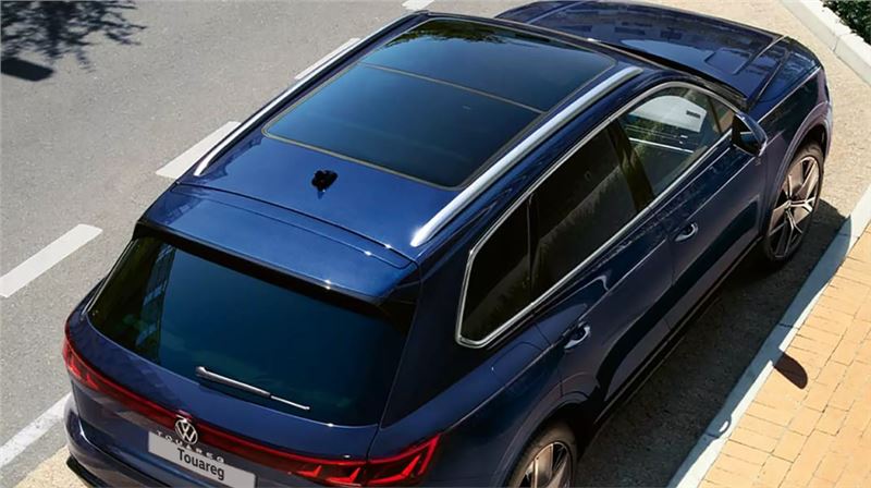Touareg'in Panoramik Açılır Cam Tavanı etkileyici manzaralar için devasa boyutlarda tasarlanmıştır. Panoramik Açılır Cam Tavan aracın neredeyse tüm tavanını kaplar ve arkadaki yolculara sınırsız bir gökyüzü manzarası sunar. Hava mı almak istediniz? Tavanın ön yarısı, kontrol panelindeki bir butona basıldığında açılır ve arka kısmın üzerine tam olarak uzanır. İşte bu kadar kolay! (E) (R)