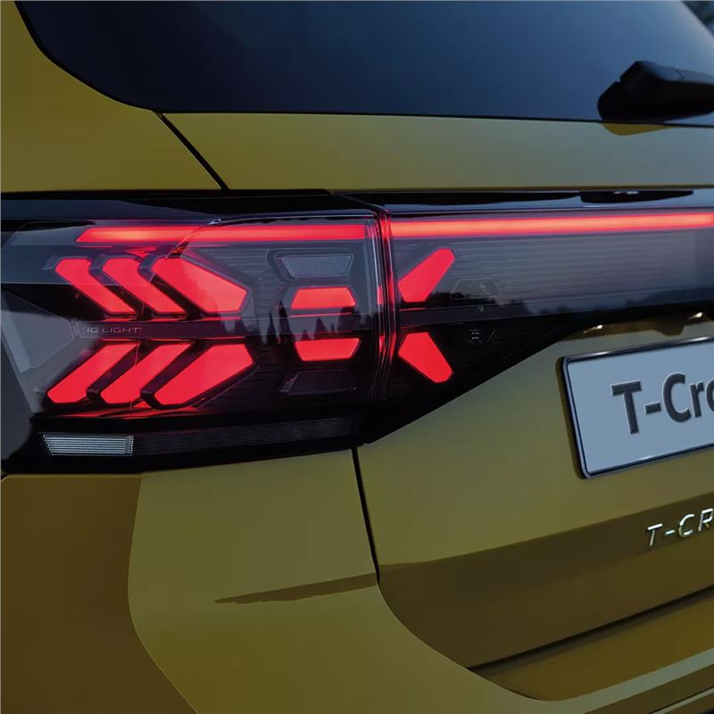 T-Cross'un LED Stop Lambaları, tamamı LED aydınlatmalara sahip park, fren, sinyal, geri vites ve sis lambalarından oluşur. (L) (ST) (R) T-Cross'un sahip olduğu modern Volkswagen tasarım felsefesi stop grubuna da yansımıştır. 3D efektli açılış/kapanış animasyonu, dinamik arka sinyaller ve animasyonlu fren lambalarıyla bu gelişmiş stop grubu tüm ilgiyi üzerine çekerek güvenliğinizi de üst noktaya taşır. (ST) (R)