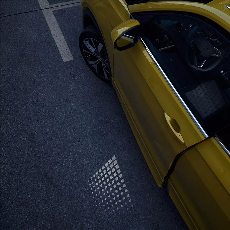Akıllı telefonunuzu fener olarak kullanarak, gece önünüzü görmeye çalışmak artık geçmişte kaldı! T-Cross'ta, aracınıza binip aracınızdan çıkarken karanlıkta nereye basacağınızı kolayca görebilirsiniz. Kapıyı açtığınızda, yan aynaların hemen altından yere bir ışık deseni yansıtılır.T-Cross'unuzun giriş alanı aydınlatılır. (L) (ST) (R)ık deseni yansıtılır T-Cross'unuzun giriş alanı aydınlatılır. (L) (ST) (R)