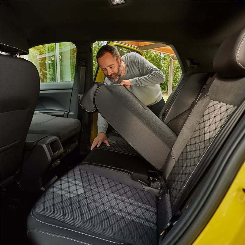 T-Cross'un fonksiyonel iç mekanı, arka koltuklar katlandığında, 1.281 litreye kadar depolama alanı sunar. Üstelik T-Cross yüksek oturma pozisyonuna sahip koltukları sayesinde trafiğe ve çevreye mükemmel bir şekilde hakimiyet sağlar. Esnek bir kullanıma sahip iç mekan ile herkesi büyüleyen T-Cross'un hareketli ve katlanabilir arka koltukları, ihtiyaca göre daha fazla depolama alanı veya oturma konforu sunar. Ayrıca, ön yolcu koltuğunun sırtlığı da tamamen katlanabilir ve böylece T-Cross, boyu 2,4 metreye kadar olan eşyaları taşıyabilmek için daha fazla bagaj alanı elde edebileceğiniz pratik bir çözüm sunar. Depolama bölmeleri, cepler ve bardak tutucuları gibi özellikler, bu fonksiyonel iç mekan konseptini tamamlar. Bu sayede, T-Cross sadece değişken ve kullanışlı olmanın ötesinde, modern bir kompakt SUV'nin tüm gereksinimlerini başarılı bir şekilde karşılar. (L) (ST) (R)