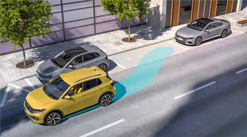 Aracınızın park alanlarına sığıp sığmayacağını mı düşünüyorsunuz? T-Cross'ta bulunan Park Asistanı "Park Assist", size sadece bir park alanının boyutunun yeterli olup olmadığını söylemekle kalmaz, aynı zamanda sizin için park edebilir. Maksimum 40 km/s hıza kadar, ultrasonik sensörler park yerlerini tarar ve bulunan uygun park alanlarını gösterge ekranında gösterir. Bu alanlardan birine karar verildiğinde park işlemi başlatılır ve Park Asistanı "Park Assist" direksiyonu devralır.1 Sadece gaz ve fren pedalını kullanmanız ve T-Cross'un çevresini yayalara veya araçlara karşın izlemeniz yeterlidir. Park Asistanı "Park Assist" aynı zamanda aracı paralel park alanından otomatik olarak çıkarmak için de kullanılabilir. (O) 1 İstenilen aşamada sistem devre dışı bırakılabilir.